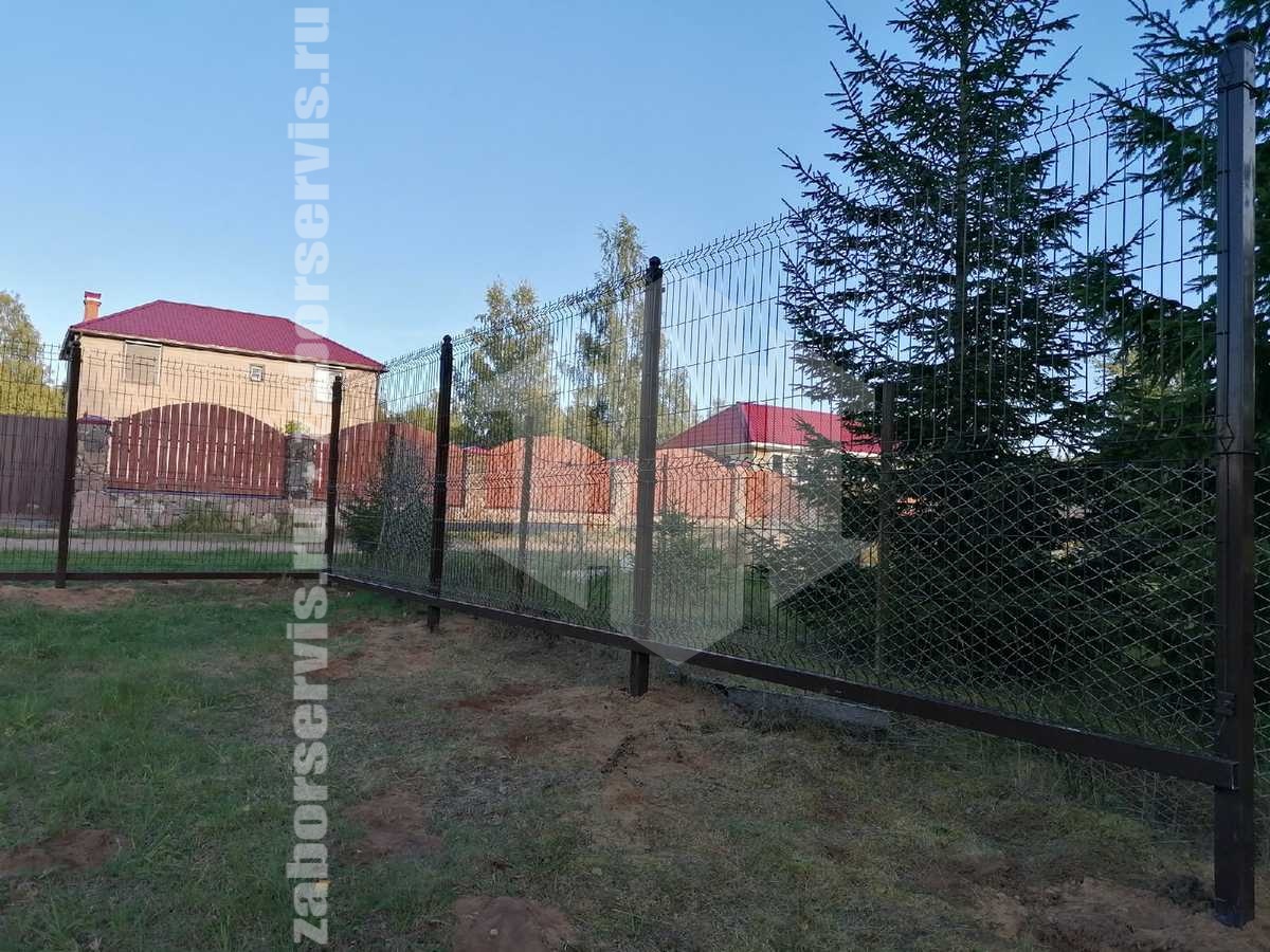 При монтаже, каждая секция 3D-забора крепится к несущим столбам с использованием входящих в комплект, хомутов или скоб. Эта технология позволяет быстро оградить даже большой участок буквально за один день, сохраняя надежность и прочностные характеристики конструкции.