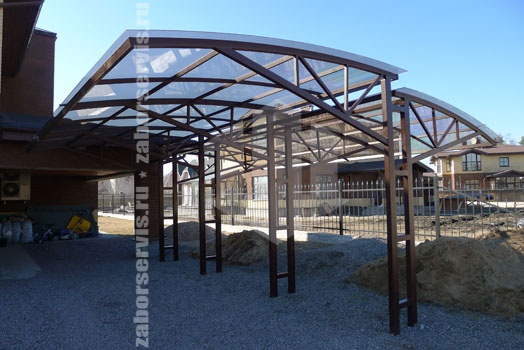 Если вы выберете крышу из профлиста, то под ней будет довольно темно, и вам придётся дополнительно устанавливать освещение. Используя поликарбонат, вы получаете сразу два преимущества: защиту от непогоды и естественное освещение.